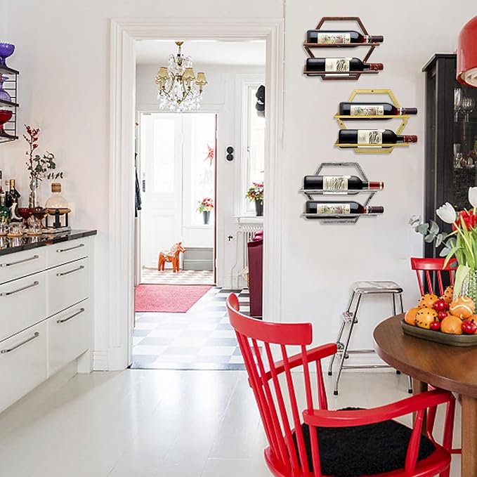 Wall Mounted Wine Bottle Rack, Gold Metal Hanging Wine Display Holder Organizer, Red Wine Racks for Home Kitchen Bar Decor Storage