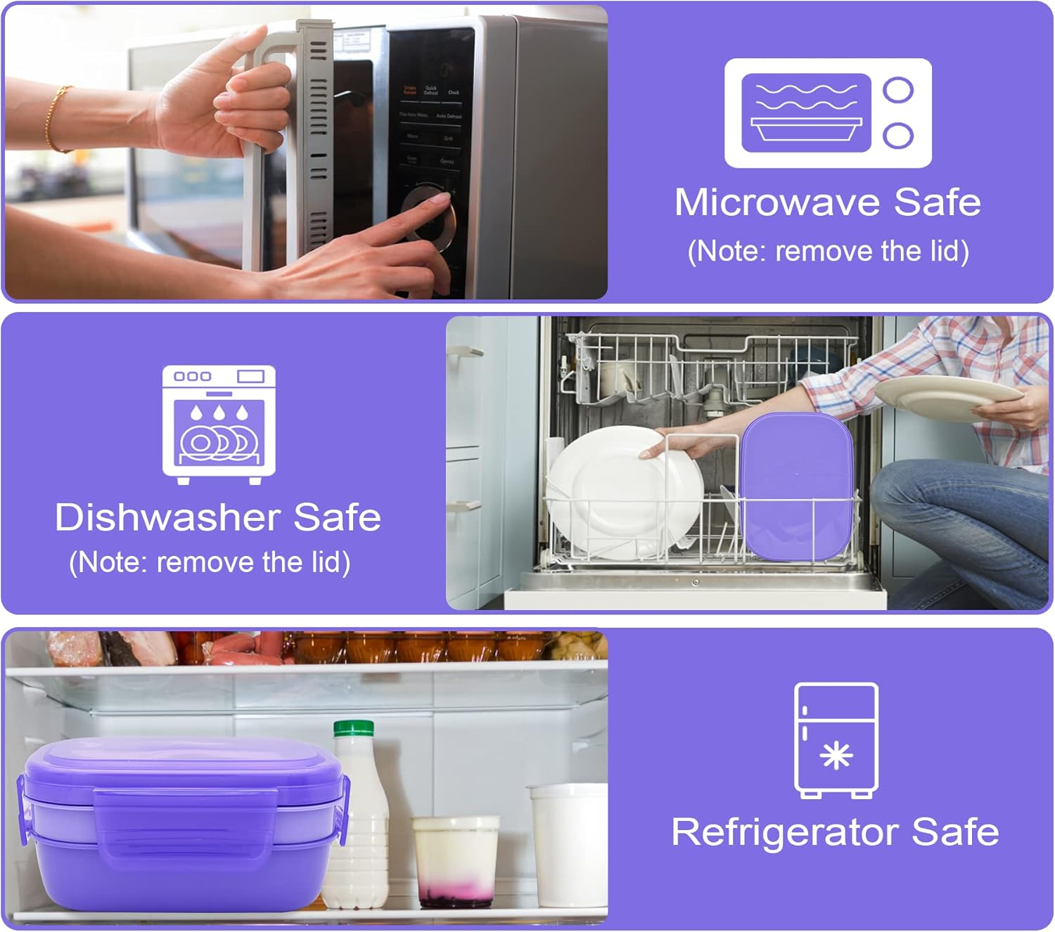 - BPA-FREE: 100% food safety grade high-quality material, free of PPA & BPA & PVC, to ensure food safety, the bento box is not easy to fade or wear, durable.(Suitable for people over 3 years old)
