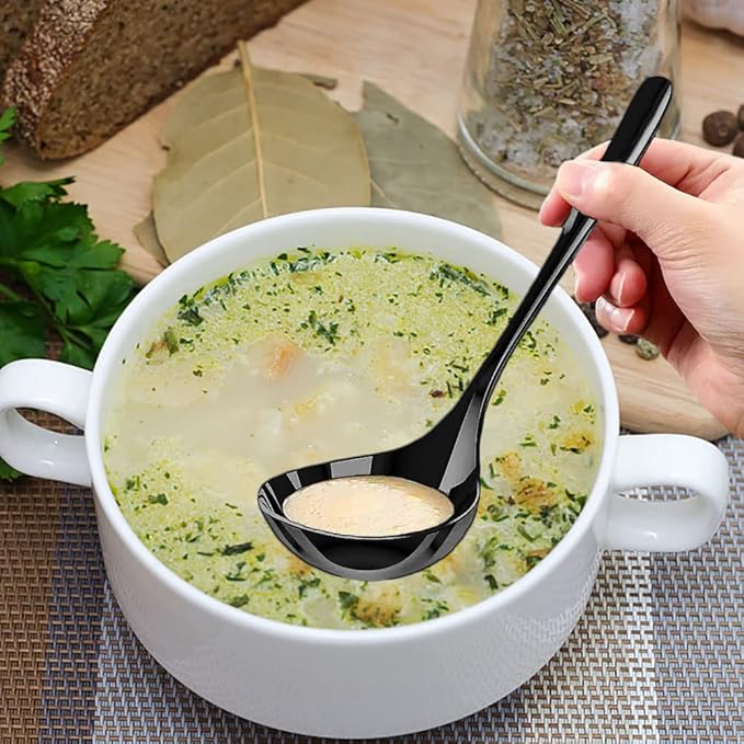 6 PCS Stainless Steel Serving Utensils, Large Serving Spoons Slotted Spoons, Forks, Ice Suger Tongs, Cake Server, Soup Ladle, Metal Utensils Set Great for Buffet Catering Banquet Party, Black