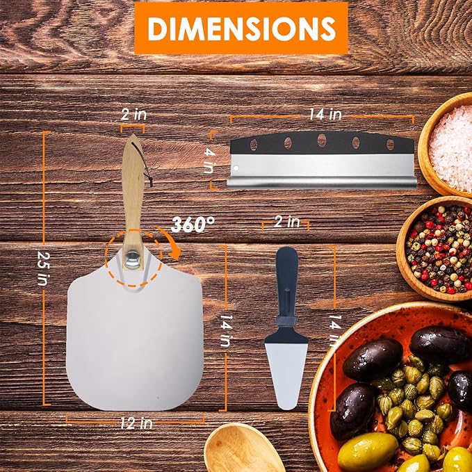 - 【Professional Pizza Cutter & Pizza Shovel】- Pizza oven accessories include a covered pizza cutter and a pizza shovel. With a sharp blade, it rocks back and forth to slice the pizza with perfect slices. After cutting the slices, you can use the pizza shovel to distribute the pizza slices to family members or guests, so that everyone can enjoy delicious food together.
