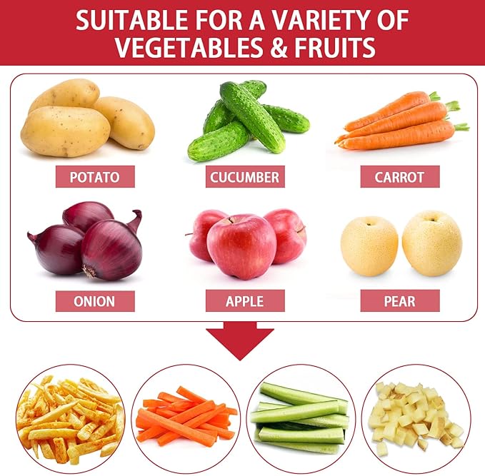 - 【ELECTRIC FRENCH FRY CUTTER】: It is powered by electricity, you can use it by plugging its power plug into your socket. It is more time-saving, labor-saving and efficient than traditional manual vegetable cutter. It is specially designed for commercial and household use.