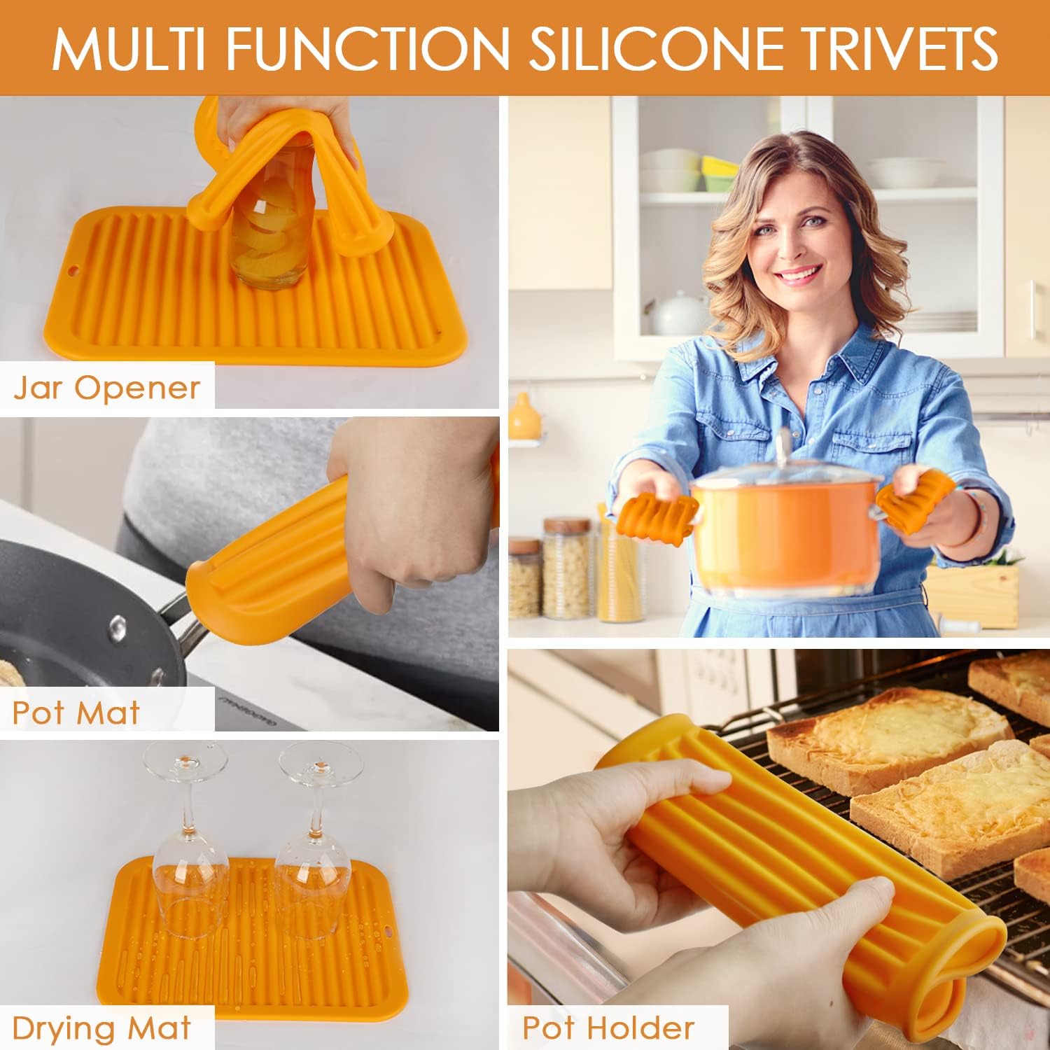 Silicone Trivets for Hot Pots and Pans, 9 * 12" Orange Silicone Hot Pads Pot Holders for Kitchen, 2 Pack Trivet Mat for Hot Dishes, Hot Pot Mats Hot Plates for Table Hot Dishes, Jar Opener