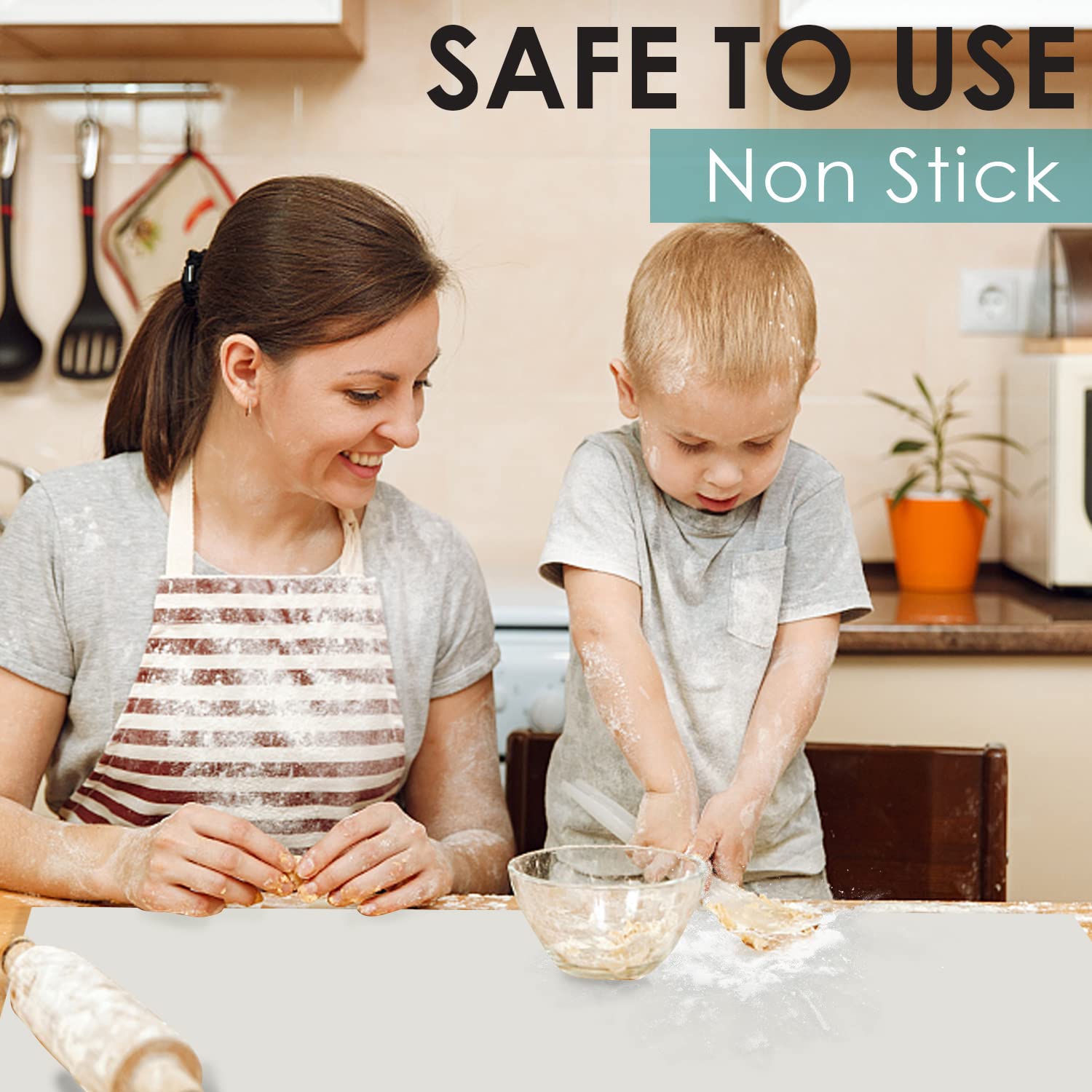 - đ˛ă 100% Safe Extra Large Silicone Mată: Sized at 27.6'' x 19.6'x 0.03"(Length x Width x Thickness), this large silicone mat is made of 100% food-grade eco-friendly silicone, BPA free, easy to cut, double-sided available, our silicone countertop mat is thicker than the average, more durable, larger use area, enough use it as a silicone placemats for kids or silicone workbench mat.