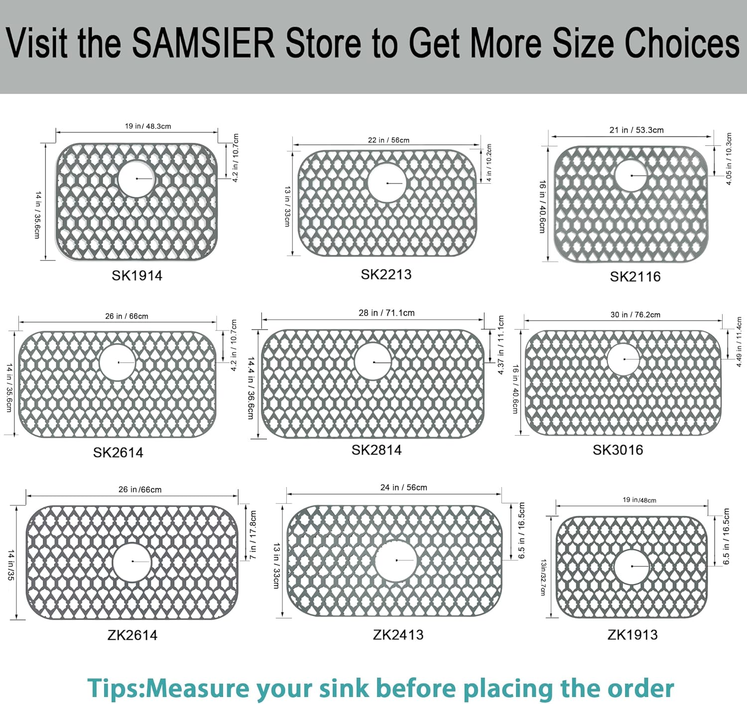 Sink Protectors for Kitchen Sink 19x14 & 21x16 & 26x14 & 28x14.4 & 30x16, Large Silicone Sink Mats Grid for Bottom of Farmhouse Stainless Steel Sink (30”x16”, Rear Drain)