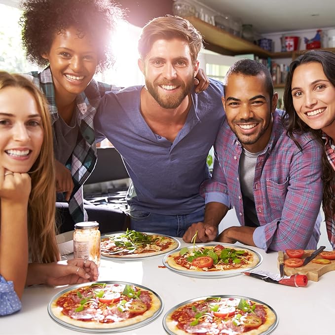 Thenshop 8 Pieces 10 Inch Pizza Pans Bulk Stainless Steel Sets Round Bakeware Pizza Trays for Oven Kitchen Baking Home Restaurant Picnics Holiday Activities Safe Sturdy Reusable Easy Clean(Silver)