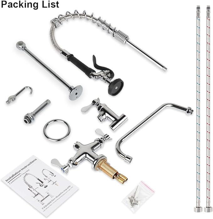 - Commercial Faucet with Sprayer: The 1.42GPM high pressure commercial faucet sprayer can be easily extended to any corner and provides powerful water pressure to effectively rinse dishes. Double-layer anti-leaking construction(with two O-rings), can provide enhanced leak-tightness of the faucet.