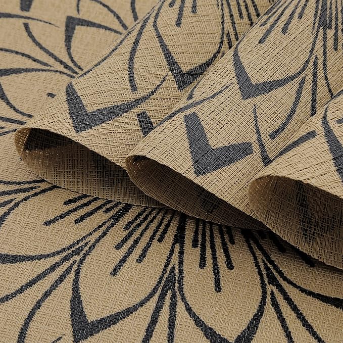 - Material: Durable PVC and polyester. Heat-insulation, wear resistance. Durable for long time use. Beautiful print on brown woven vinyl placemats. No Odor. Nonfading.