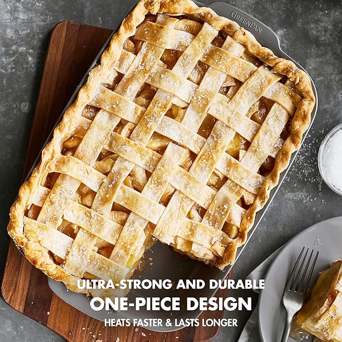 GreenPan Premiere Ovenware Healthy Ceramic Nonstick 13" x 9" Rectangular Baking Pan, Cast Aluminum Bakeware, Warp-Free, Oven and Broiler safe to 600F,Dishwasher Safe, PFAS-Free, Gray