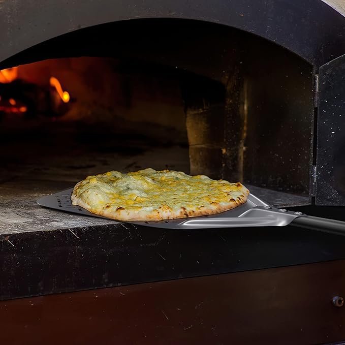 - VERSATILE AND PRACTICAL: At 28.4 inch overall in total, with a 12-inch perforated pizza paddle, this pizza peel works well for both personal and commercial use, making it the ideal pizza accessory for any pizza lover or professional chef