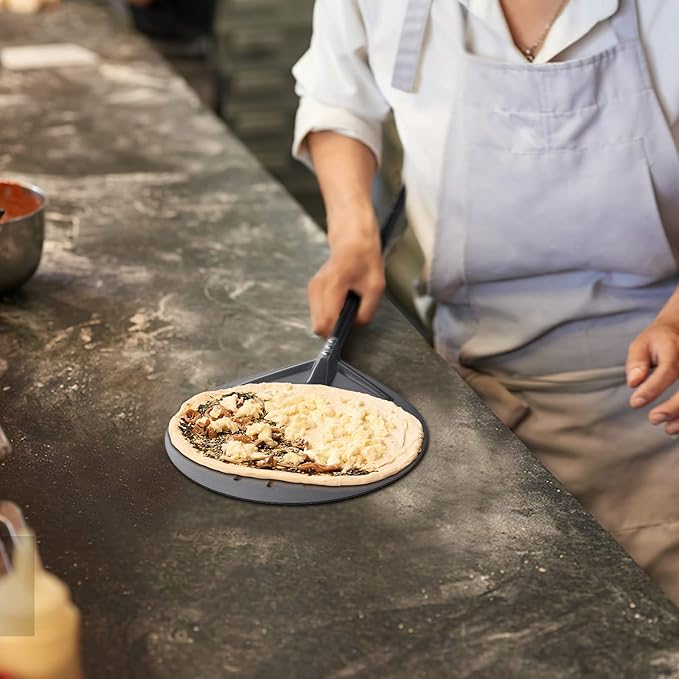 - PRACTICAL PIZZA PEEL: 9 inch round pizza peel allows for easy rotation while sliding the pizza into or out of the oven. It features tapered edges that help you get underneath the pizza from many directions, making it easy to turn and spin the pizza quickly