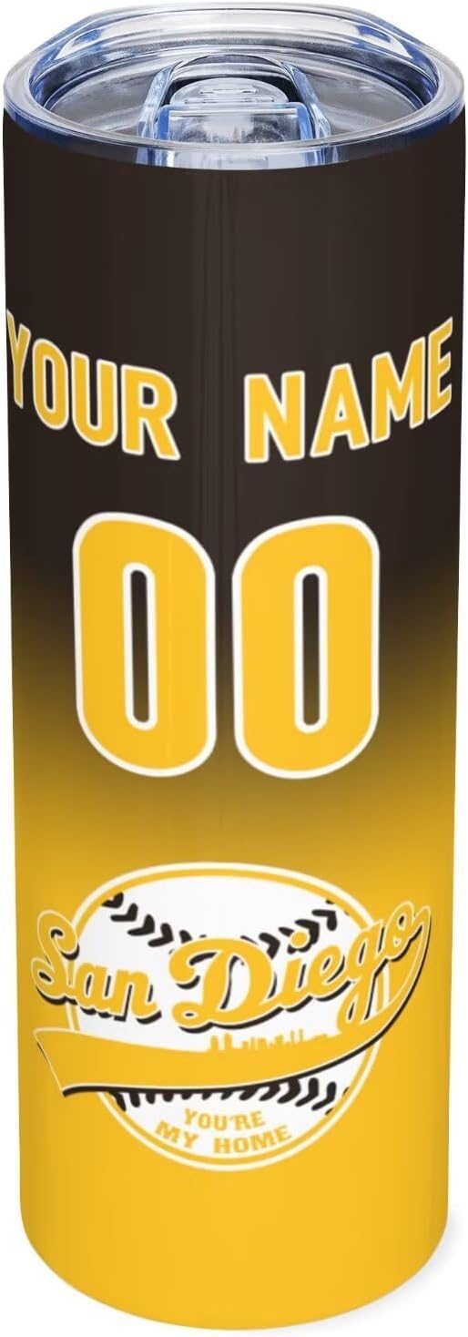 Custom Tumbler Stainless Steel Cup Personalized Baseball Vacuum Insulation Travel Mug Add Your Name Number Fans Gift for Baseball Fans