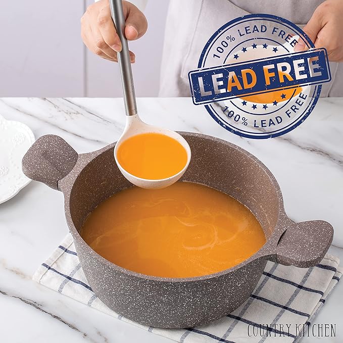 - SAFE COATING - Our Cast Aluminum pots and pans are non-toxic and safe to use for your everyday cooking. Cookware without the chemicals that can be used as a soup pot, sauce pan, skillet or non stick frying pan set. with superb food release and easy cleanup. Hand wash recommended to maintain the nonstick finish.