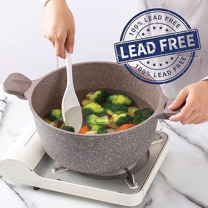- SAFE COATING - Our Cast Aluminum pots and pans are non-toxic and safe to use for your everyday cooking. Cookware without the chemicals that can be used as a soup pot, sauce pan, skillet or non stick frying pan set. with superb food release and easy cleanup. Hand wash recommended to maintain the nonstick finish.