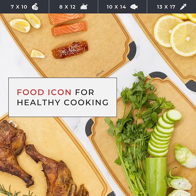 Elihome Essential Series Wood Fiber Cutting Board for Kitchen, Knife Friendly, Dishwasher Safe, Non-Slip Feet, Juice Groove, Reversible, Non-Porous, Eco Friendly, 10"x 7" SMALL