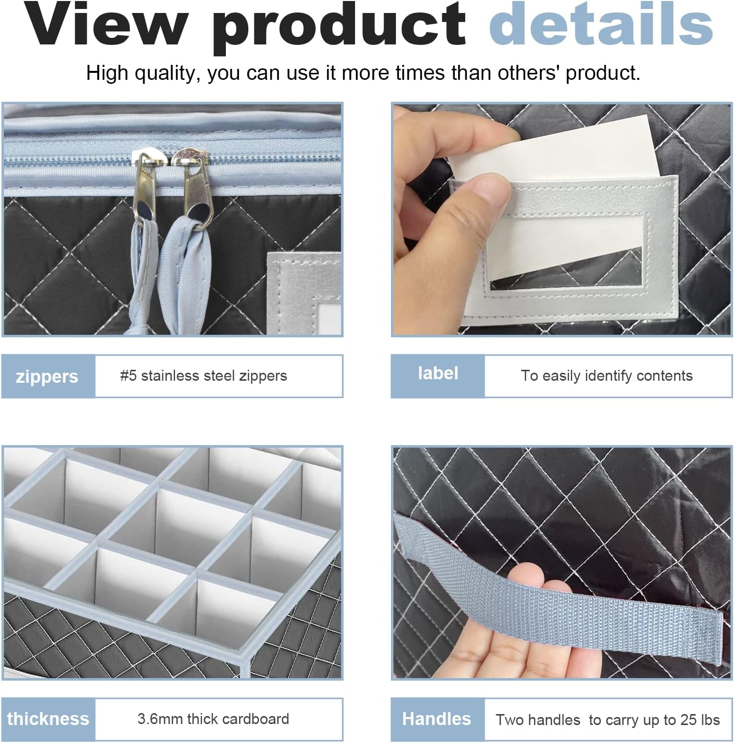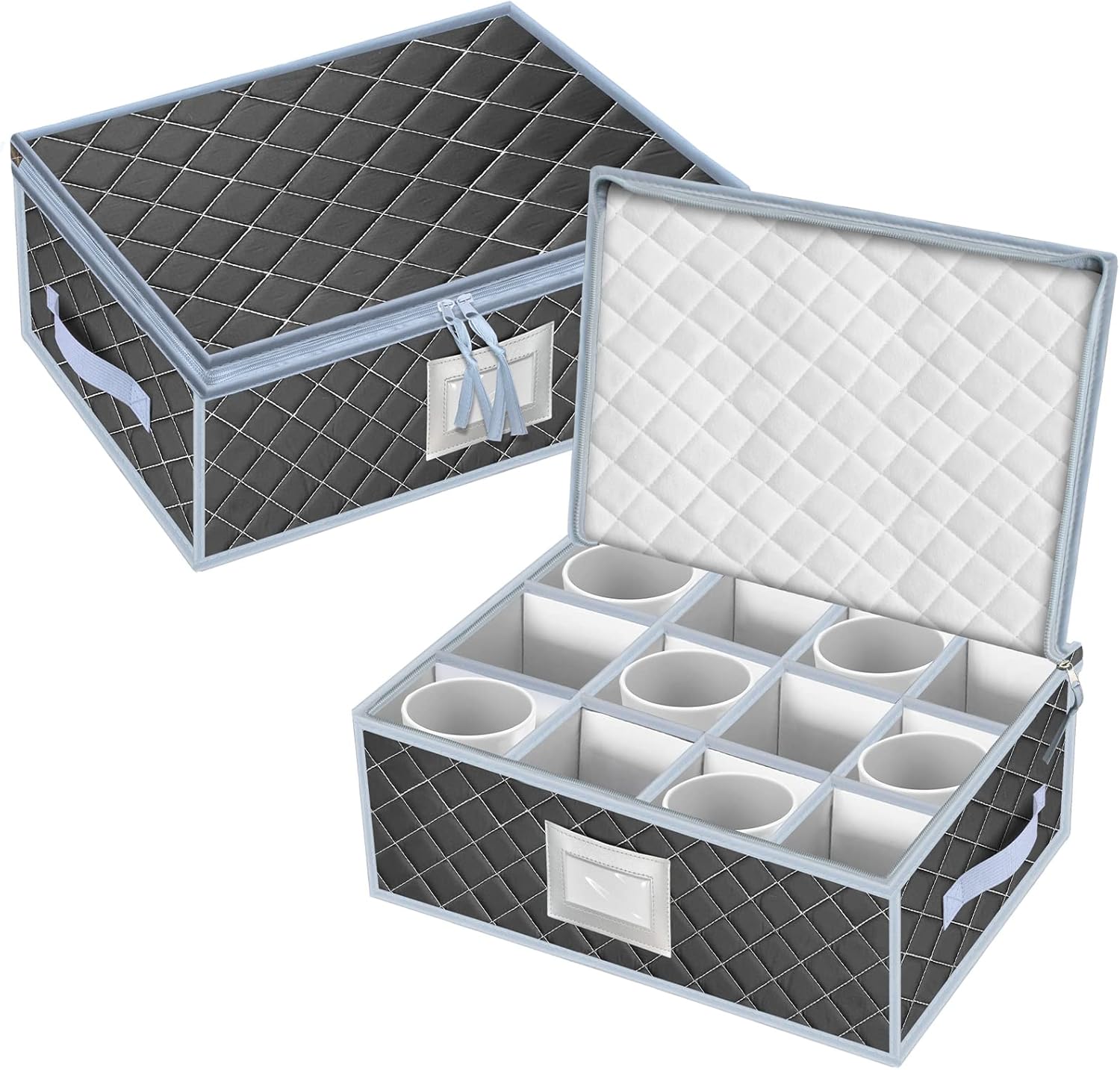- đ„ăSturdy Handles & Zippersă: The china storage containers with 2 sturdy handles on the sides for easy carrying and moving. Additionally, two #5 stainless steel zippers are designed to better protect the cups inside the box and make it easy to store and retrieve cups.