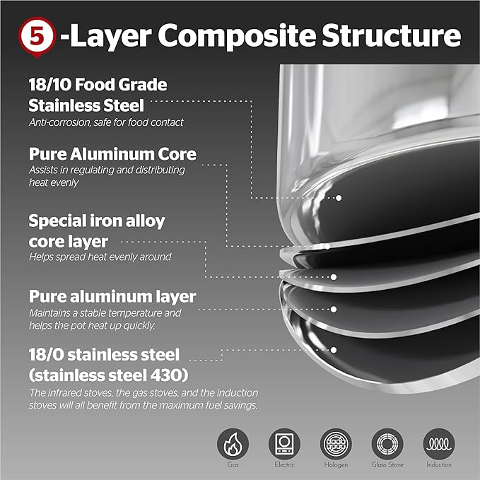 - Heats Up Quickly With Tri-Ply Stainless Steel - The unique whole body tri-ply bonded construction alternates layers of stainless steel and aluminum for maximum durability. This pot heats up quickly and evenly while preventing hot spots, ensuring better food cooking and energy savings. Say goodbye to hot spots and toxins, enjoy healthy consistent cooking results that last a lifetime