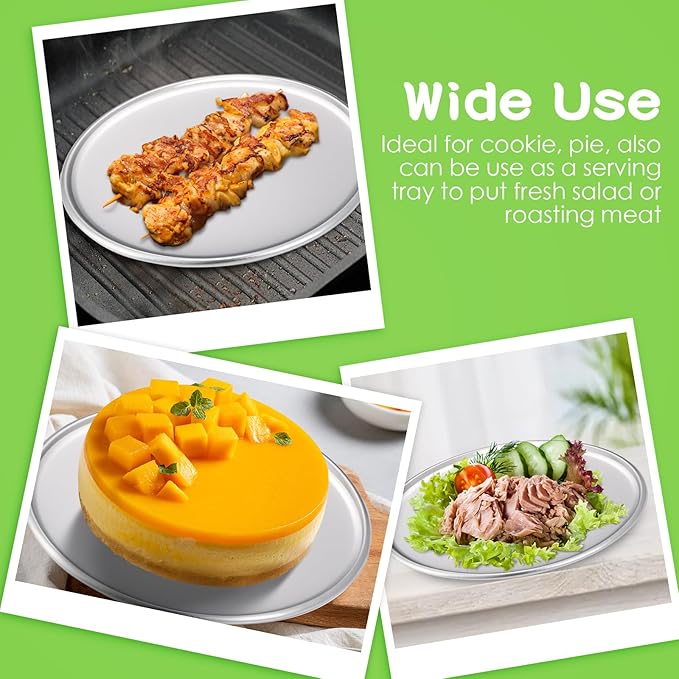 - Wide Range of Use: these round pizza pans are proper for making savory pizza and roasting meat for several persons in any occasion, such as party, housewarming, birthday, which also can be applied as a serving platter, enjoy your delectable pizza, fresh salad and appetizing dessert with these versatile pans