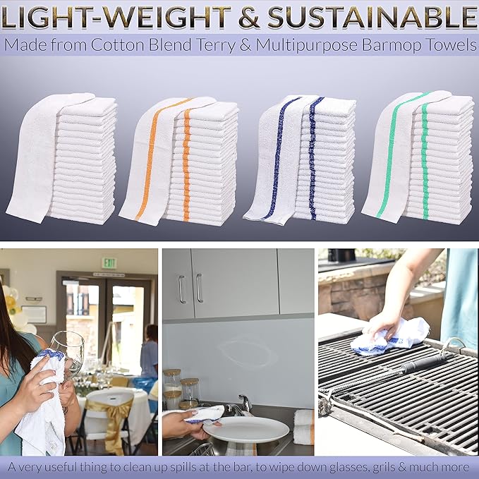 - Economy Grade: The terry cleaning cloth towels are affordable and won’t leave any burden on your wallet. For businesses, it would become the number one choice with an economic and distinctive features. The sturdy and absorbent terry white bar towels are for use in bars, kitchens, restaurants, hotel, school collage, office and other places for cleaning. Please Note this is not a premium bar mop even If you are unsatisfied with your purchase at any point and for any reason, you can contact us.