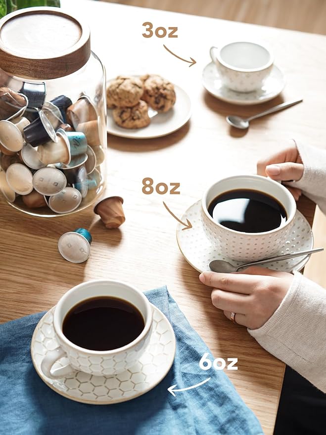 - Four Different Pattern Design: The outside of the cups are embossment which have four styles. The inner glaze is a smooth ceramic surface. . New homeowners will like the timeless farmhouse look of these bowls.Enough space for a coffee spoon and biscuit while enjoying a cup of lungo coffee