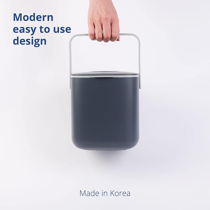 - EASY CLEANING - Made in South Korea from easy-to-clean dishwasher safe plastic, the inside of this indoor compost bin is smooth to prevent food waste from sticking, and the inner basket is removable, making cleaning a breeze. Whether you hand wash this food scrap bin or place it in the dishwasher, a clean compost pail is just a few minutes away.