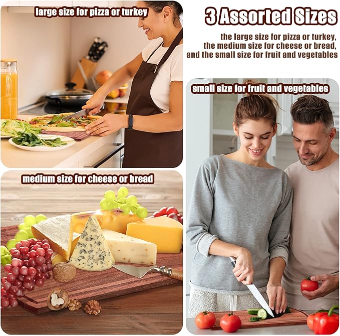 - Appropriate Size: each wooden cutting board measures about 12 x 9 inches, and the thickness is about 0.3 inch, large in size and light in weight, can cut vegetables, meat, fruits, cakes, bread, herbs, cheese and salads and many more Grow what you want, let you give full play to your culinary skills