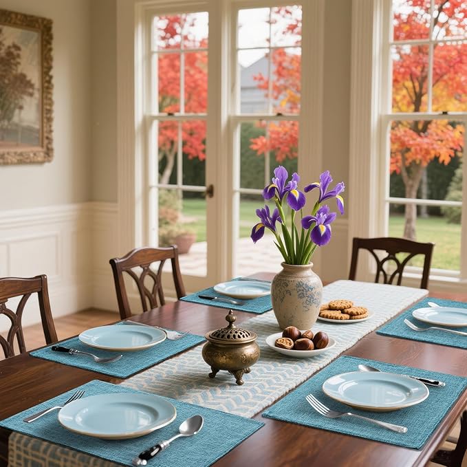 Homaxy Cloths Placemats for Dining Table Set of 4, Heat Resistant Washable Cotton Linen Blend Table Mats, Easy to Clean Place Mats for Indoor Outdoor Party Kitchen Decoration, 13" x 19", Aqua