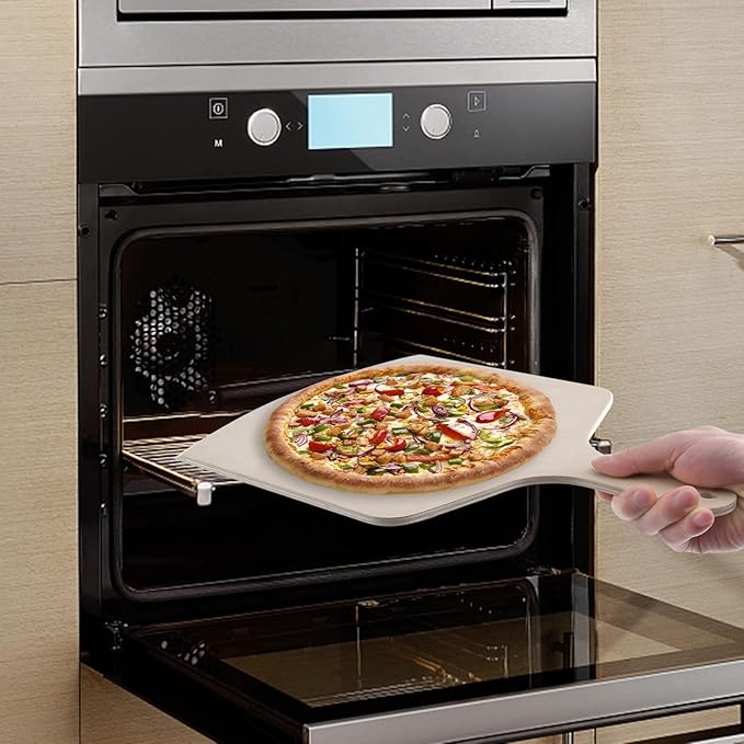 - PERFECT SIZE FOR YOUR PIZZA AND HANDS - The large pizza peel is 12"*17" with 5" handle which is big enough to put your pizza on and retrieve it back out of the oven without heating your hand.