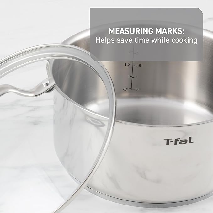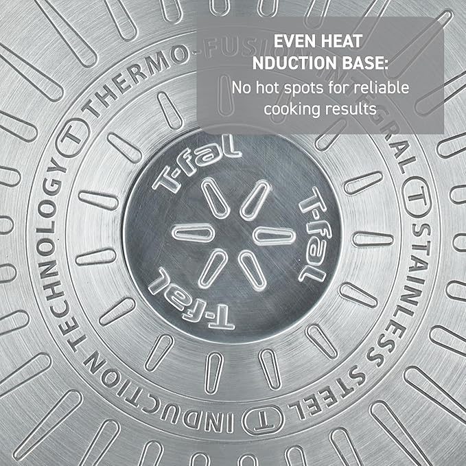 T-fal Stainless Steel Cookware Set 11 Piece, Induction, Oven Broiler Safe 500F, Kitchen Cooking Set w/Fry Pans, Saucepans, Saute Pan, Dutch Oven, Steamer, Pots and Pans, Dishwasher Safe, Silver