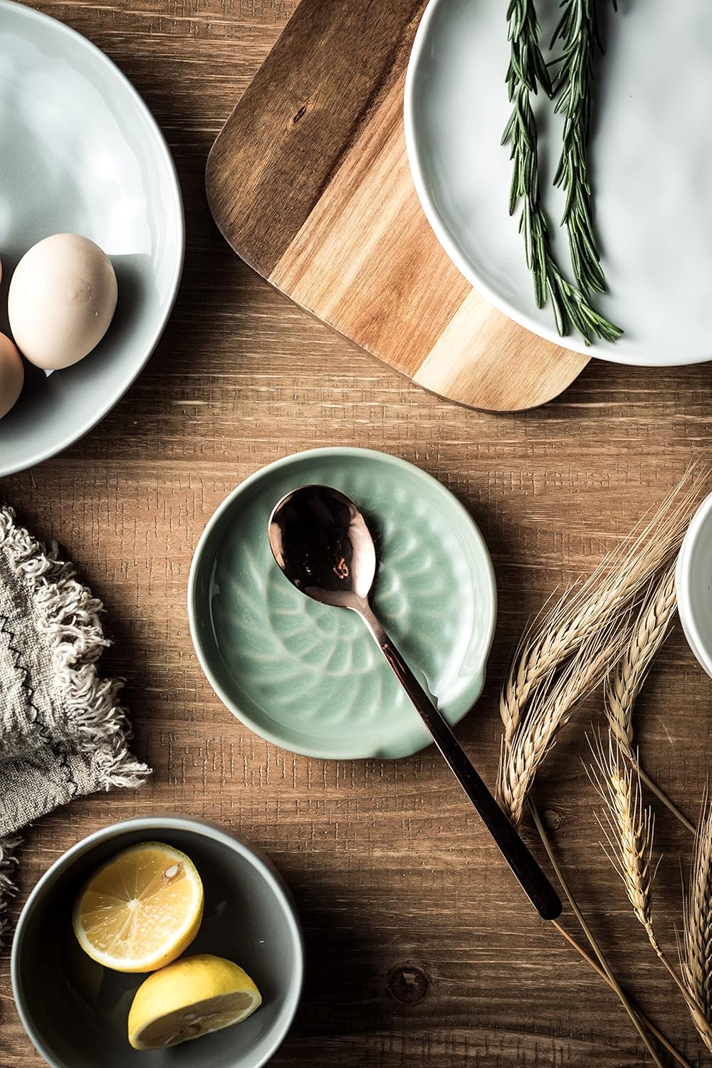- Green spoon rest will easily complement any kitchen décor style. No need to sacrifice style for function, the unique spiral pattern design and versatility go hand in hand. Add a classic touch to any dining area with this kitchen stuff