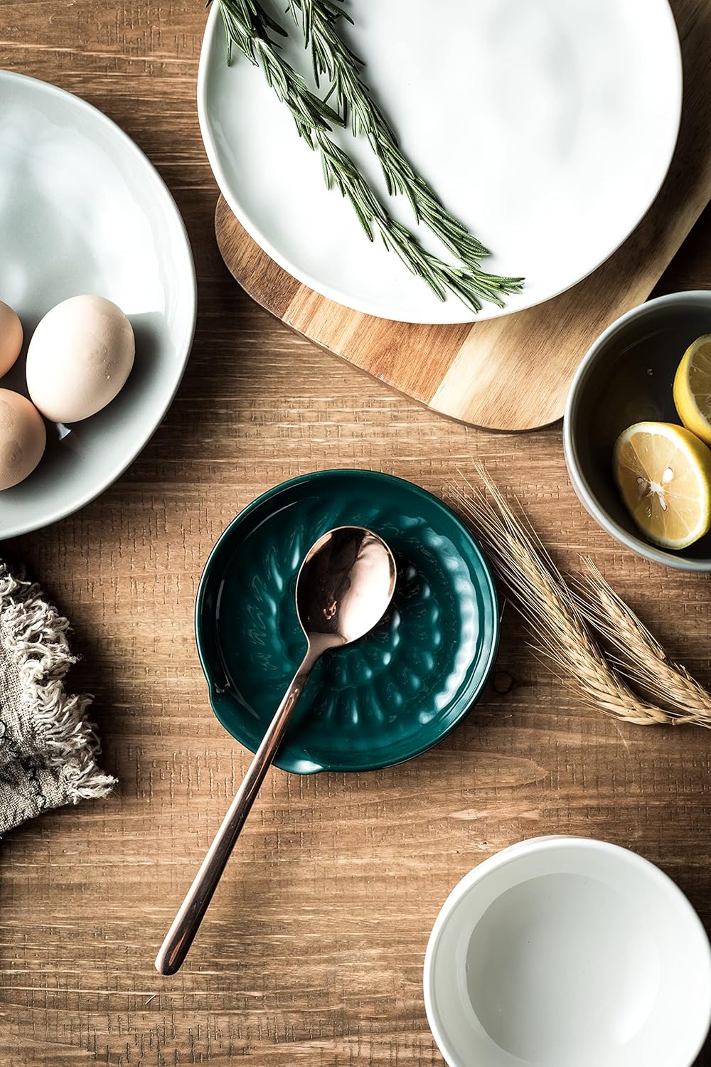 - Easy to Clean: The ceramic spoon rest for kitchen counter collects all the water that drips off your cookware! It's easy to clean and dishwasher safe. And it can be easily stacked without taking up too much space in your cabinets