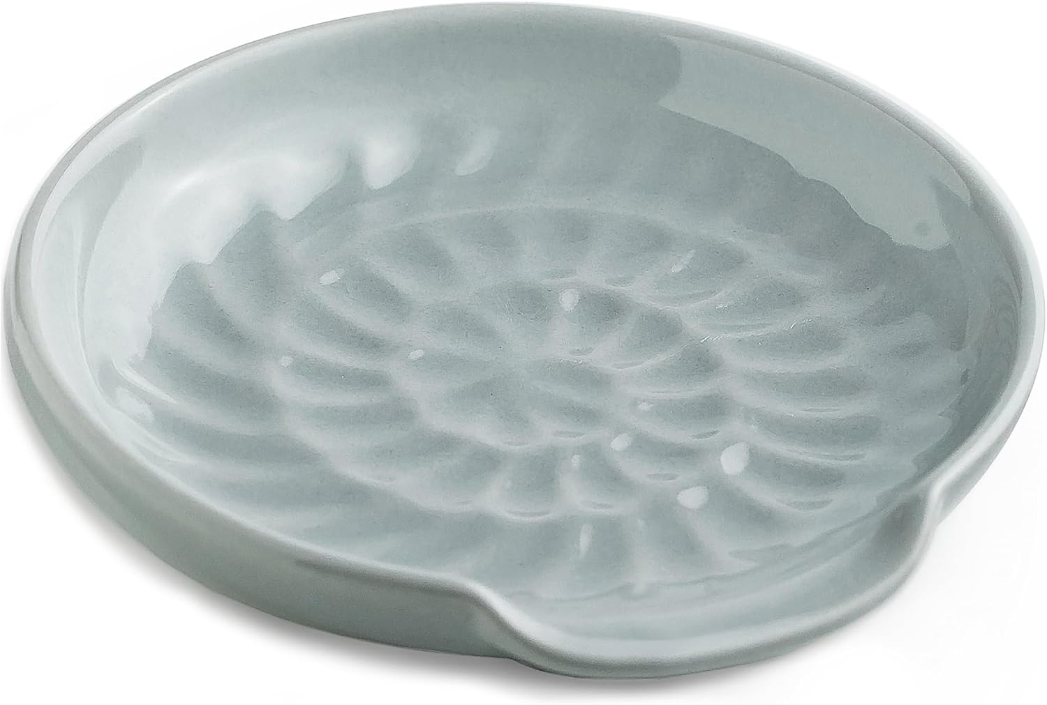 Ceramic Spoon Rest, Kitchen Spoon Holder for Stove Top, Cooking Utensil Rest - Modern Farmhouse Kitchen Decor Large Utensil Holder for Ladles Tongs Spatula - Gray