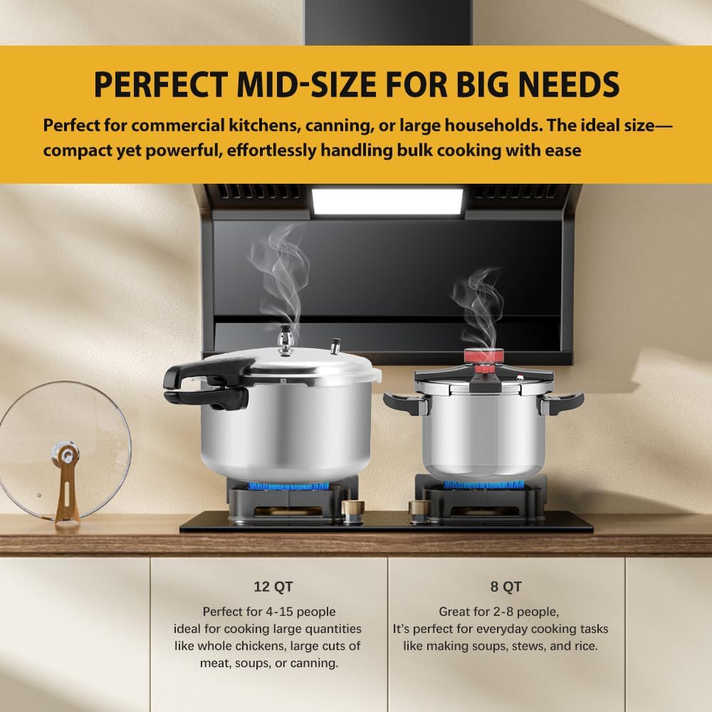 - [12 QT Pressure Cooker] All the delicious dishes can be cooked at once. BreeRainz 12Qt pressure canners for canning ​provides enough space for all your cooking purposes,such as making delicious soups, stews or canning,etc