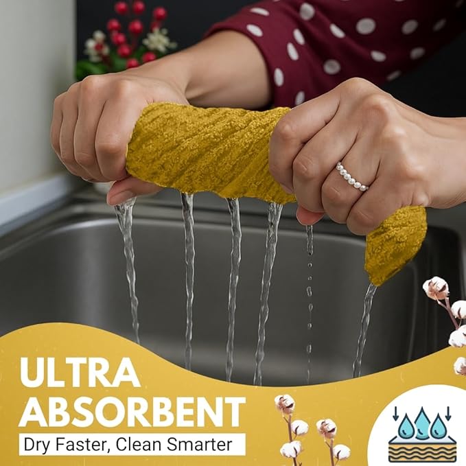 - VALUE PACK: three-pack kitchen towels and dishcloths set. These 100% terry ring-spun cotton kitchen dish towels are an excellent value for all your bar, kitchen, and household cleaning needs without sacrificing quality and durability