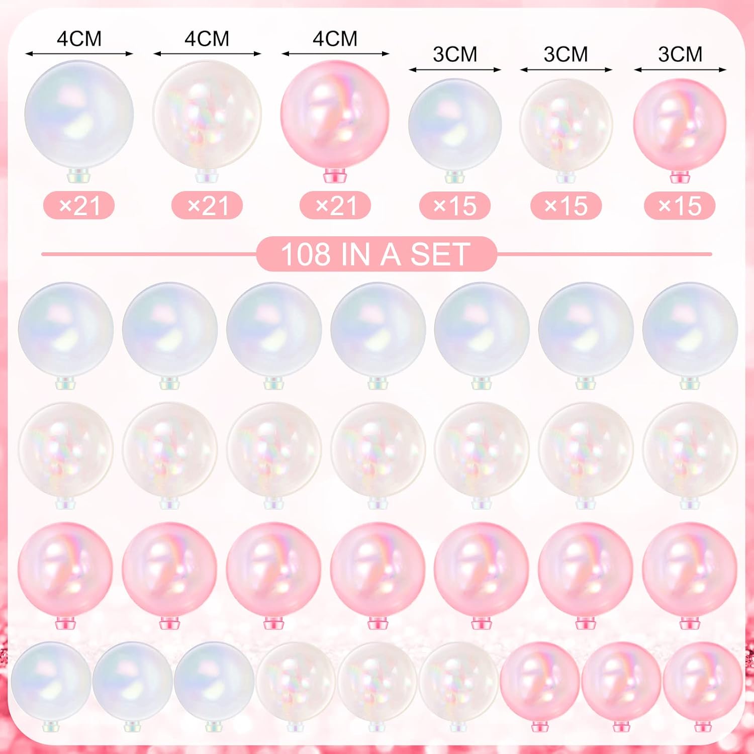 108 Pcs Balls Cake Topper DIY Cupcake Insert Foam Balloons for Cake Baking Wedding Anniversary Birthday Decoration(Pink, Clear, White,1.57'', 1.18'')