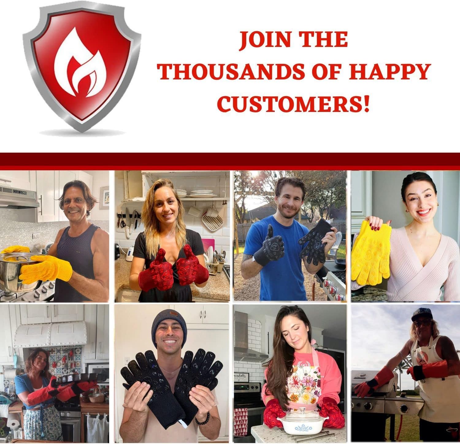 - Extreme Heat Resistant & Cut Resistant - EN407 certified, that can withstand heats up to 932°F. Our heat resistant gloves provide the highest protection for your hands, so you can cook with confidence with flexible fire gloves in extreme heat. The gloves also provide the highest EN388 level 5 cut resistance which is 4 times stronger than leather. Ideal for cutting vegetables, meats, fish and more.
