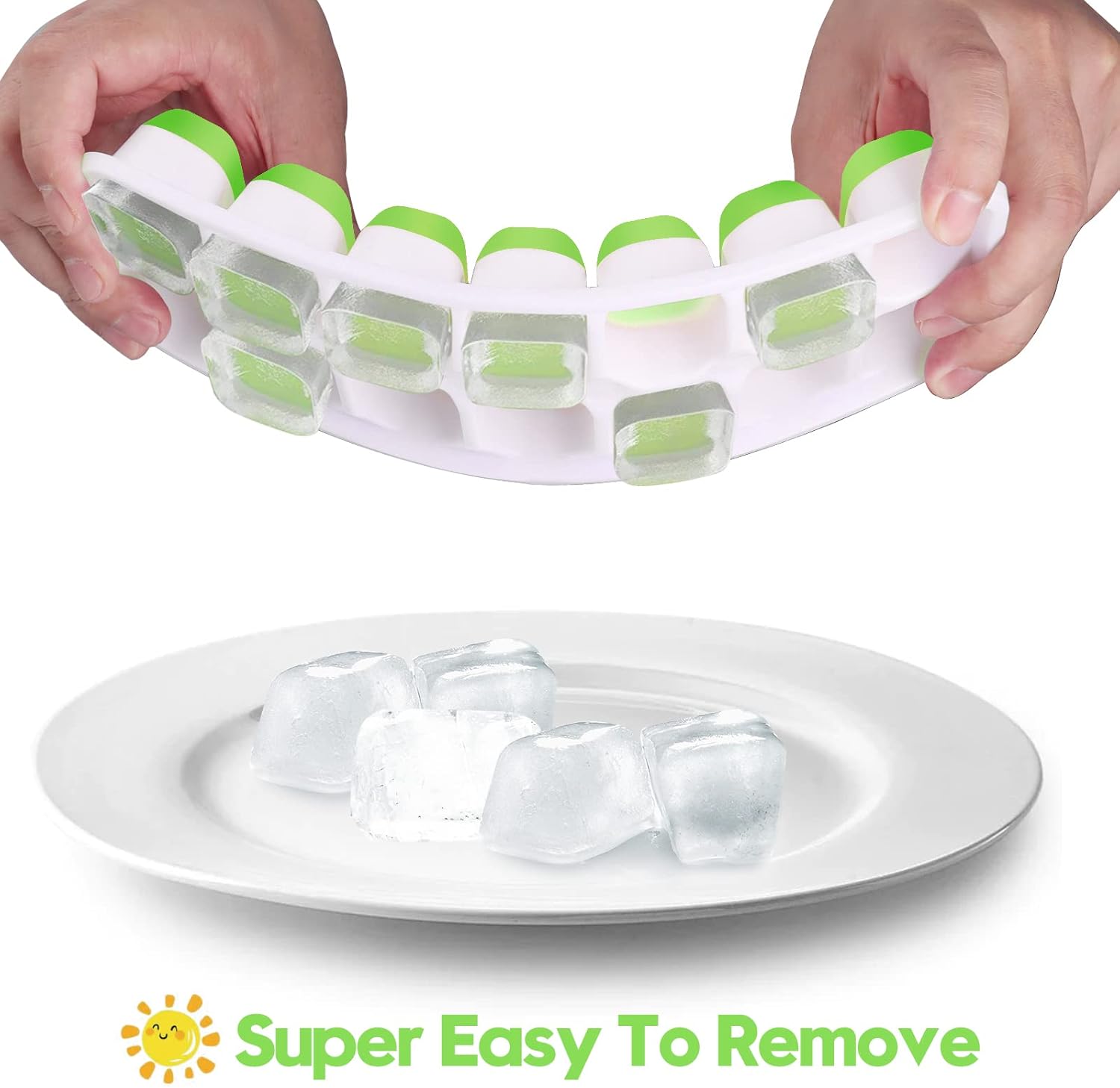 - Effortless to Release: Compared with the previous hard plastic ice trays, this silicone ice cube trays with lid use TPE material and the bottom wider design, which makes it very easy to release ice cubes by pushing the soft bottom. No need for awkward bending or twisting, removing the ice cube isn't a tough job anymore!