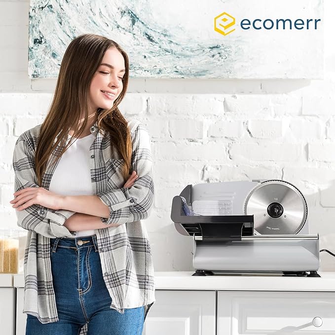 - SAFETY FIRST - Don't worry about this home delicatessen slicer sliding out of place during use. This meat slicer has four suction feet at the bottom to keep it firmly planted on the counter or table.