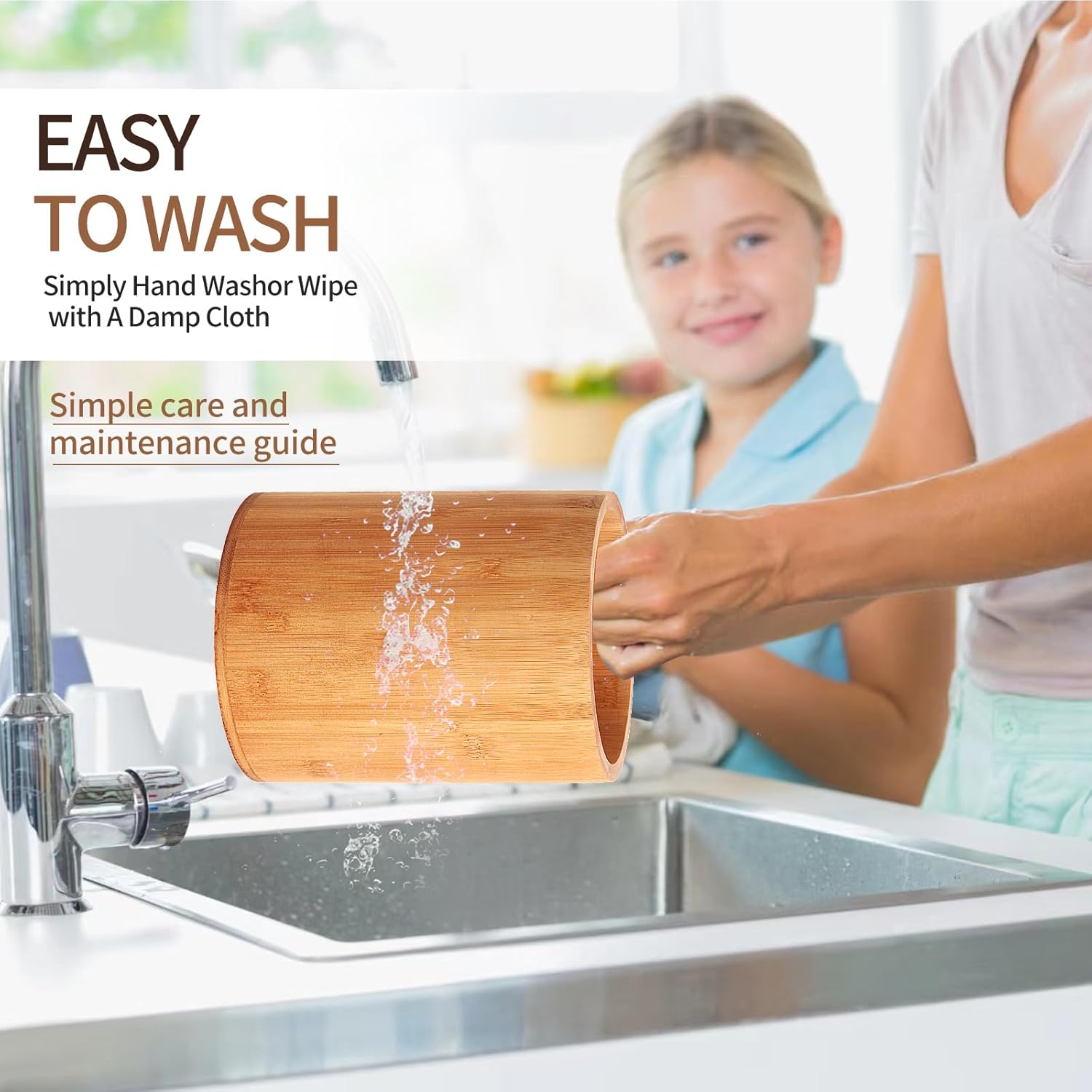 - 【Easy Care】It's super easy to clean and very durable due to the stain and odor resistant properties of bamboo, caring for the utensil holder is easy, simply wipe clean with a damp cloth and soap