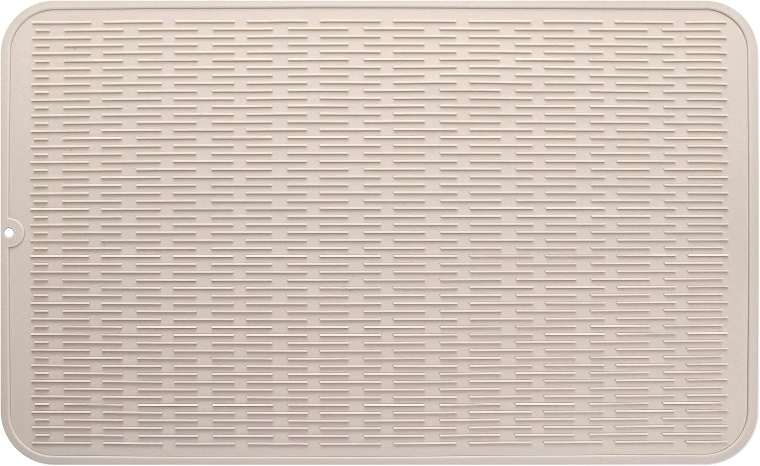 Silicone Dish Drying Mat for Multiple Usage,Easy clean,Eco-friendly,Heat-resistant Silicone Mat for Kitchen Counter or Sink,Refrigerator or Drawer Liner Tapioca 3XL 28 inches x 18 inches
