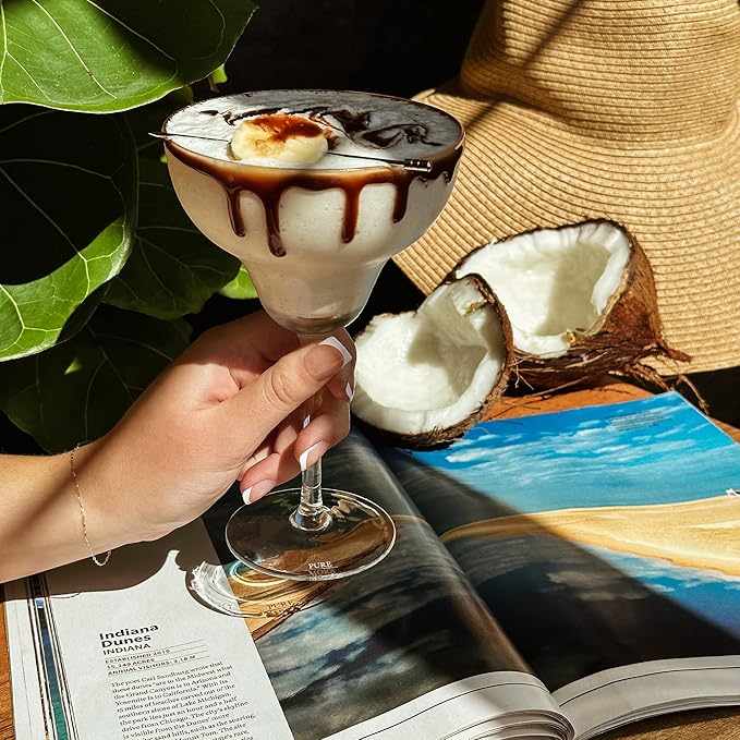 - SHAPE DESIGNED BY COCKTAIL ENTHUSIASTS - As lovers of mixology, we know that the shape of the glass matters. The history of this glass shape has a few rumors or legends, but what we do know is the wide rim is ideal for adding salt, sugar, and garnishing fruit, and the stem is easy to hold without getting your hands too cold. The size is relatively larger than other coupe glasses, which allow for a more substantial drink.