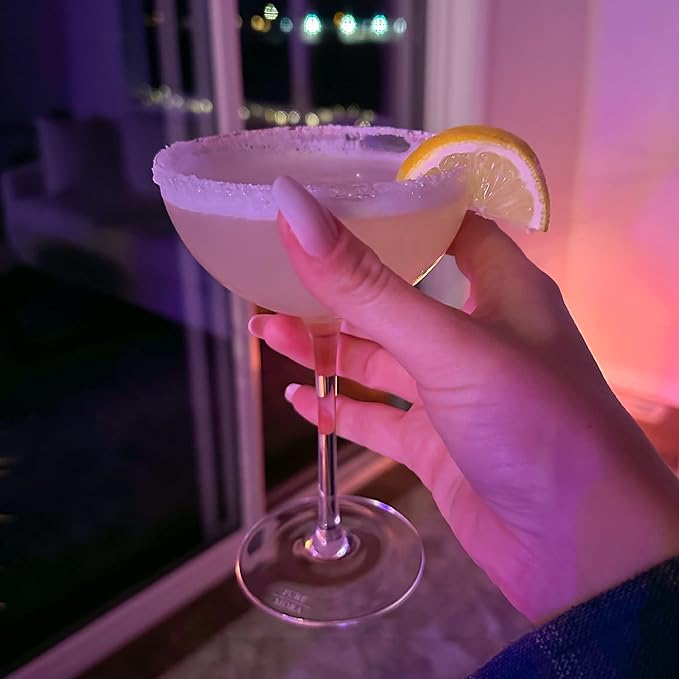 - QUALITY MATERIALS AND EXPERT CRAFTSMANSHIP - It's time to upgrade your glassware. Many cocktail glasses contain 20% lead. Switching to Pure Mora will put your mind at ease knowing our crystal contains zero lead nor any other harmful metals. Hand blown glass ensures for a lightweight, high quality product.