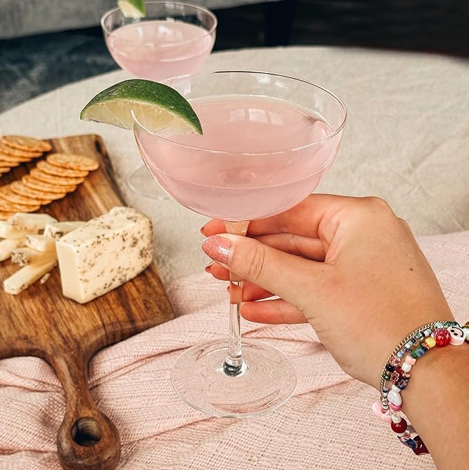 - SHAPE DESIGNED BY COCKTAIL ENTHUSIASTS - As lovers of mixology, we know that the shape of the glass matters. The classic coupe was designed in the mid 1600s in England. Since then, the coupe has come and gone according to trend, and now is back again. Use with champagne for a classic approach, or go more modern and serve with any up-and-coming cocktail.