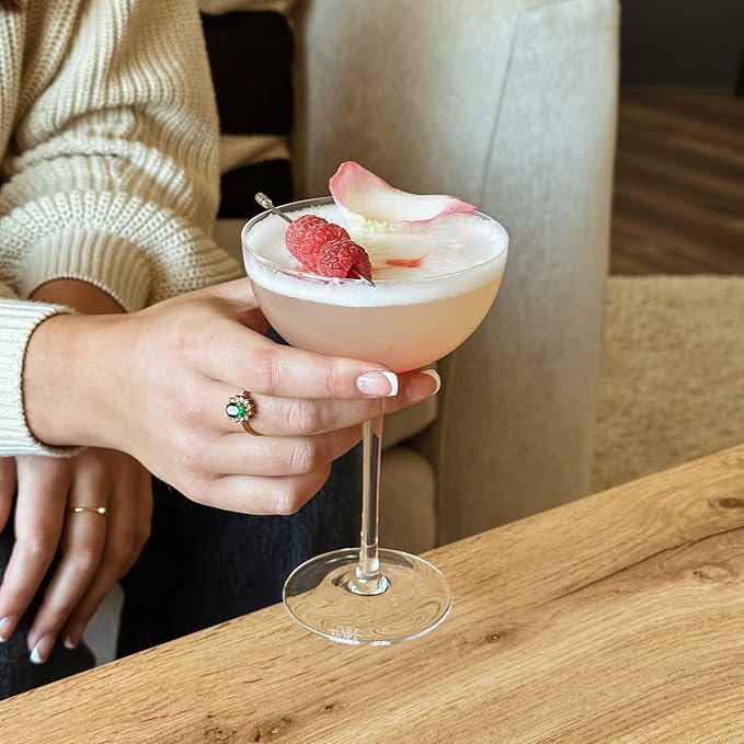 PURE MORA The Lyra Coupe Glass Set of 4, 7oz Handblown Premium Crystal Classic Cocktail Glasses for Martini, Champagne, Mixology, Home Bar, Fancy Margarita, Gin&Tonic, Drinking, etc. For Mixologists