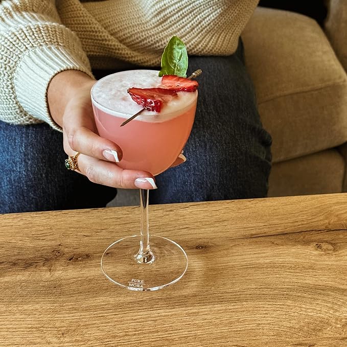 - QUALITY MATERIALS AND EXPERT CRAFTSMANSHIP - It's time to upgrade your glassware. Many cocktail glasses contain 20% lead. Switching to Pure Mora will put your mind at ease knowing our crystal contains zero lead nor any other harmful metals. Hand blown glass ensures for a lightweight, high quality product.