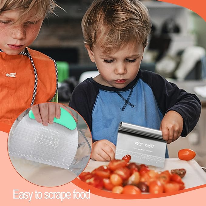 - Heal your baking daily - Dough scraper and Dough Cutter are two essential kitchen tools. Both Bench Scrape and dough scraper have clear scales that can cut dough evenly. This set of dough cutters is very suitable for professional bakers and novices.