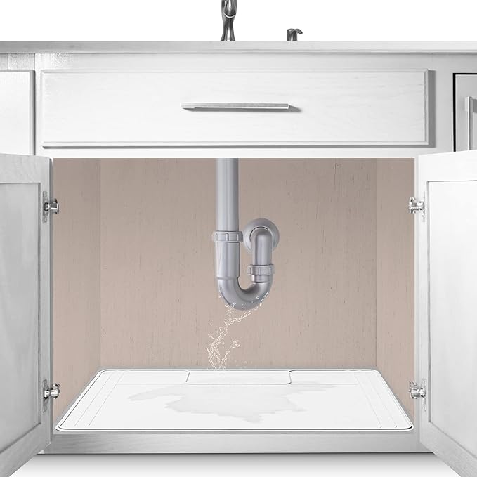 - ✔️ PREMIUM DESIGN & MATERIALS - Designed to look impressive while protecting your cabinets. Your cabinets and floor interiors are safe with under sink drip tray. The liner is made from BPA-free premium silicone and it is safe for human and pets.