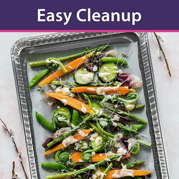 - ECONOMICAL: Our cookie sheets for baking come in a convenient 15 count. These disposable sheets are a great way to cut clean-up time. Disposable pans allow you to prep, bake, and serve from one dish! Our aluminum pans are oven, freezer, and dishwasher safe!