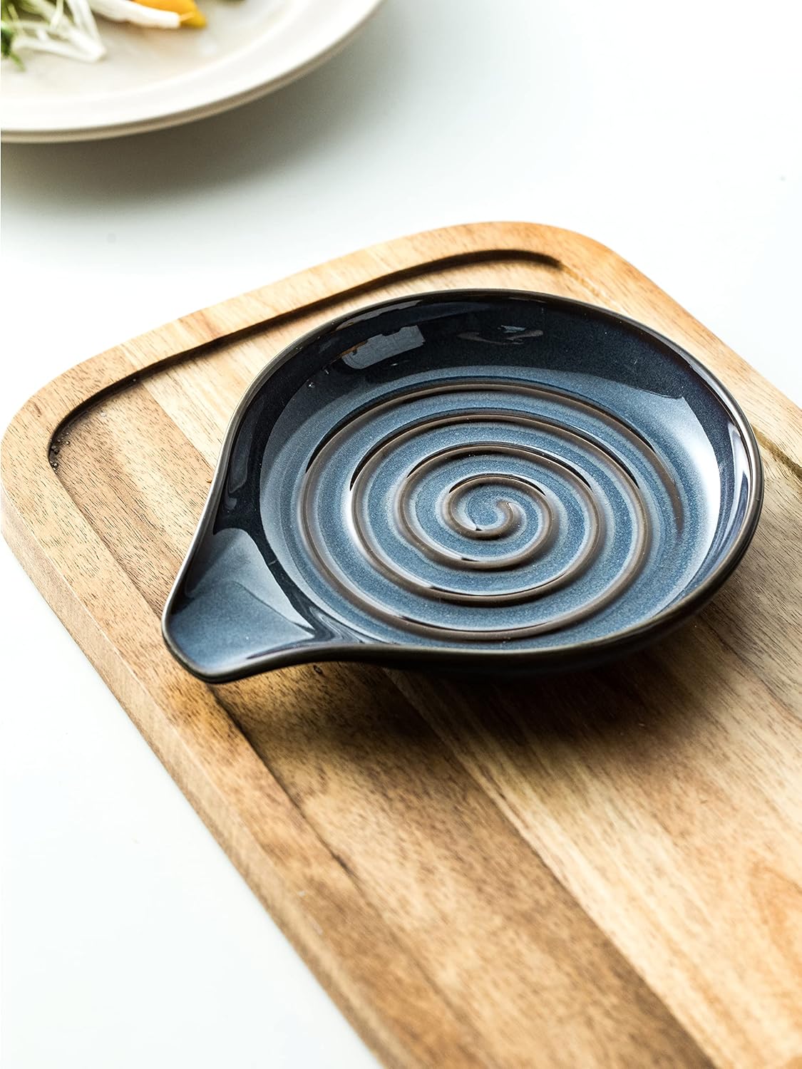- [Stable Design] The wide base and rounded depression in the middle ensure the stability of the utensils placed on it, with enough weight to prevent the cookware from rolling or falling off, keeping the table clean and tidy. The delicate swirl pattern can well match and decorate kitchen countertops, stoves, and dining tables.