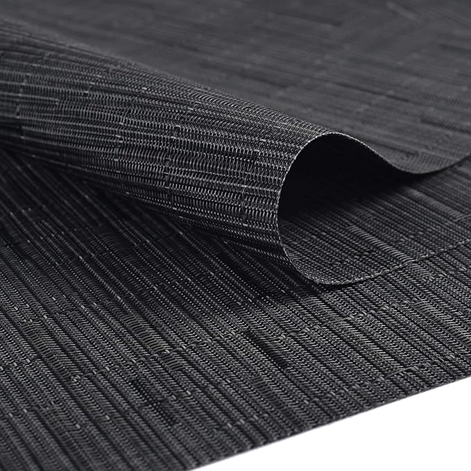 SHACOS Placemats Set of 8 Woven Vinyl Place Mats for Dining Table Wipe Clean Heat Resistant Washable Kitchen Table Mats (8, Black)
