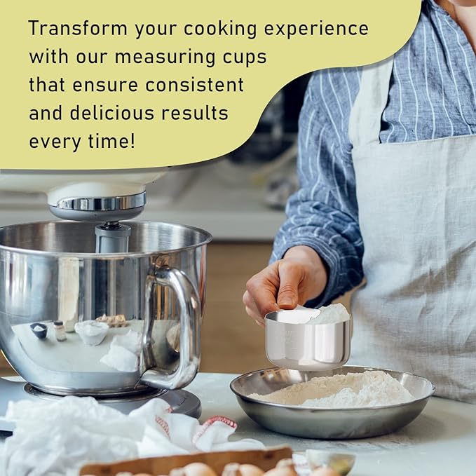 - 【Durable】 The integrated molded stainless steel measuring cup is designed for sturdiness and durability, with a solid construction that can withstand regular use without breaking or warping